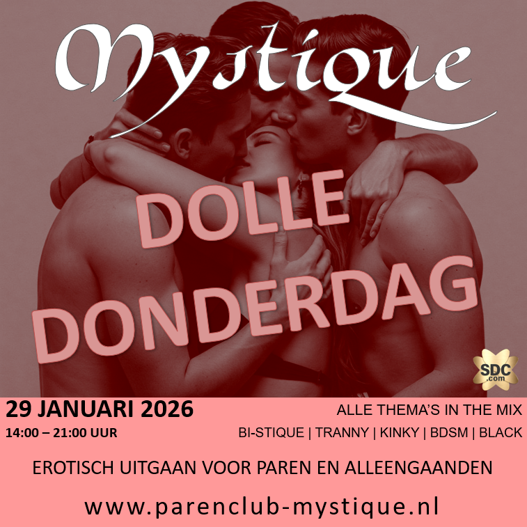 Laten we alles mixen, alle thema’s door elkaar. Biseksueel, Tranny, kinky en BDSM……….dat is de dolle Donderdag