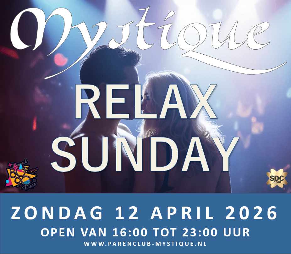 Relax Sunday bij Mystique is alleen voor stellen die op zoek zijn naar ontspanning en nieuwe contacten. Bij Mystique heerst een ontspannen sfeer waarin iedereen zich thuis voelt.